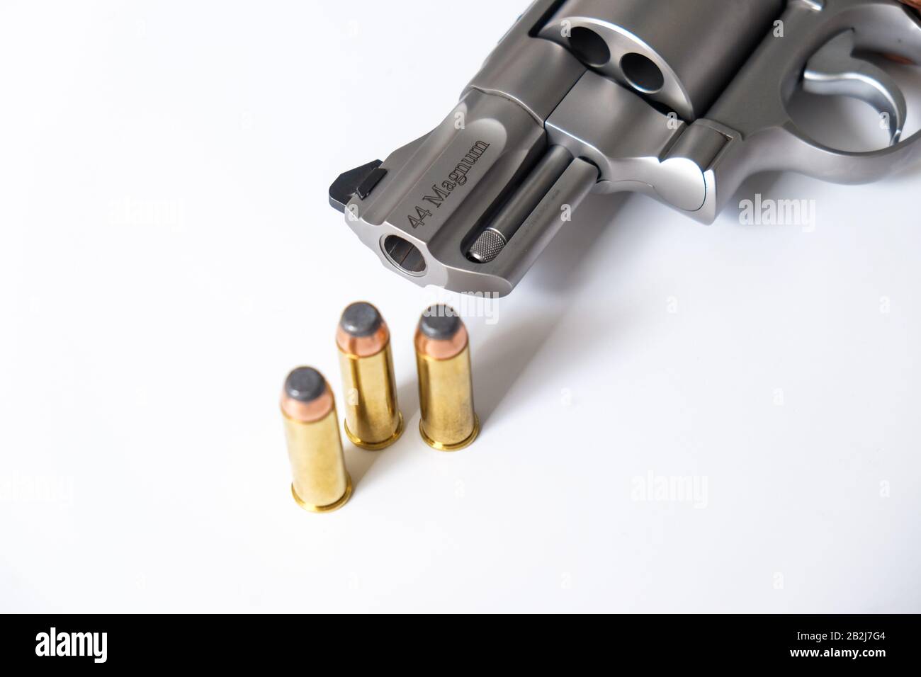 44 Magnum Revolver Gun With Bullet On White Background Crime Concept Stock Photo Alamy